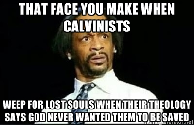 “Uh…God, before we are cast into the fire, we have just one question…How can you damn us for all eternity if we were not even able to repent and believe in the Savior? You withheld from us the necessary grace that makes regeneration, faith, and salvation even possible. God, are we missing something here? We are now going to the place of eternal punishment simply because you chose to not regenerate us when we were dead in trespasses and sins, and you could have done so! Almighty One, with all due respect, what else could we have done except what you decreed us to do? Because of our absolute depravity, we had no other option because we could only choose that which was evil and against you. It could not be avoided because that is what You determined. And now we are lost…forever! Before we depart from you into eternal suffering, could you please answer just this one question so at least we will know why it is our fault and not yours that we will be tormented throughout eternity?”
